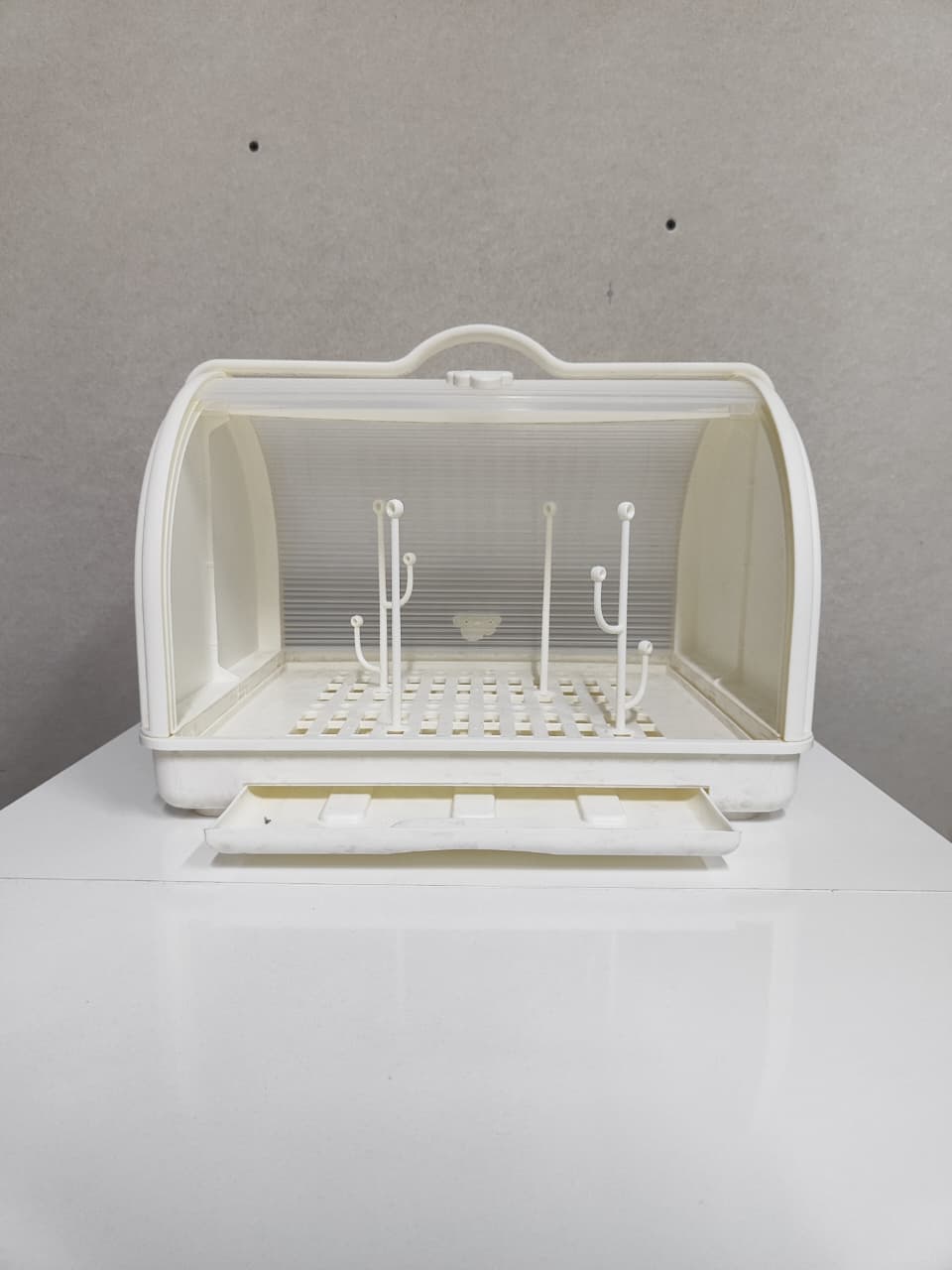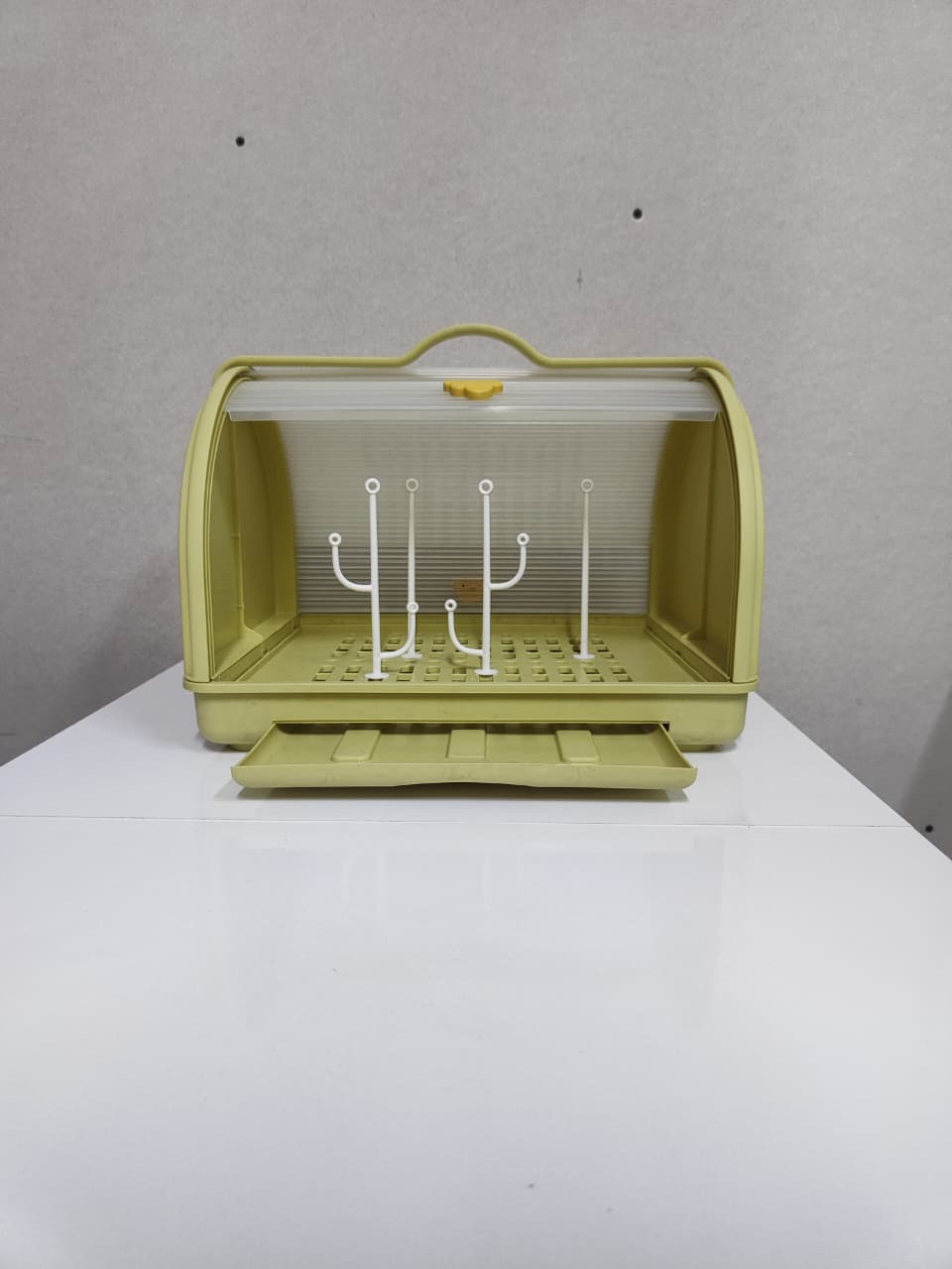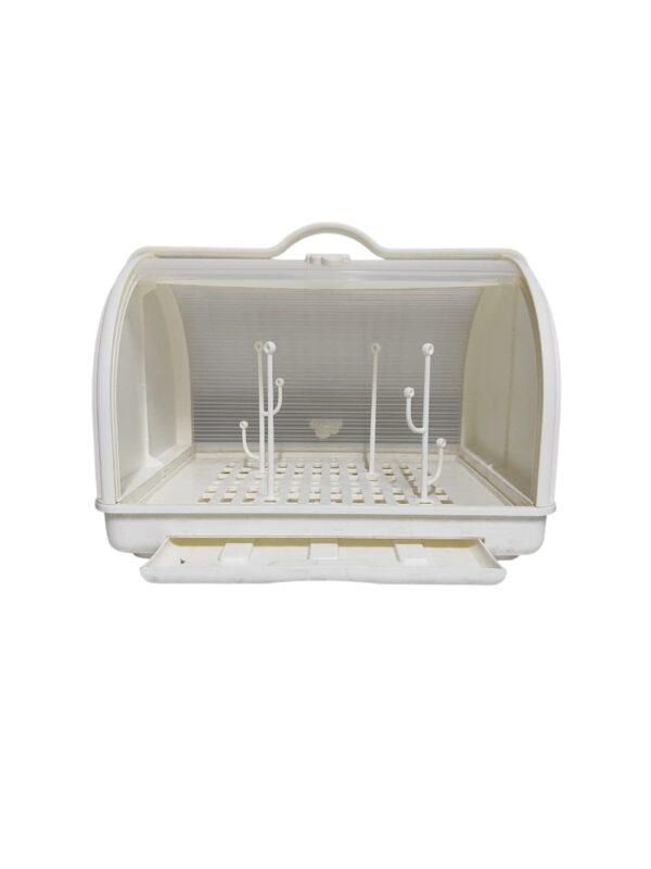 საბავშვო ჭურჭლის საშრობი — პრაქტიკული და ჰიგიენური აქსესუარი, რომელიც განკუთვნილია ბოთლების, საწოვრებისა და სხვა საბავშვო ჭურჭლის უსაფრთხო გასაშრობად. დახურული კონსტრუქცია იცავს მტვრისგან, ხოლო სპეციალური სადგამები უზრუნველყოფს ჰაერის თავისუფალ ცირკულაციას და სწრაფ გაშრობას. იდეალურია ყოველდღიური გამოყენებისთვის.