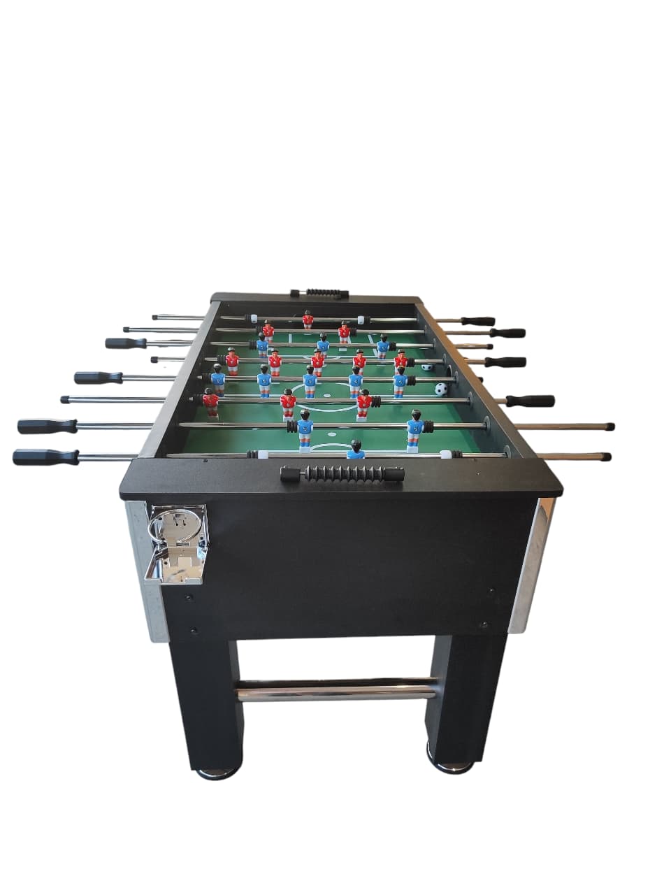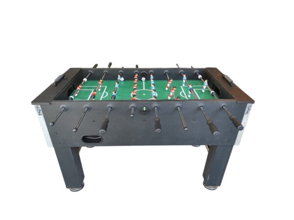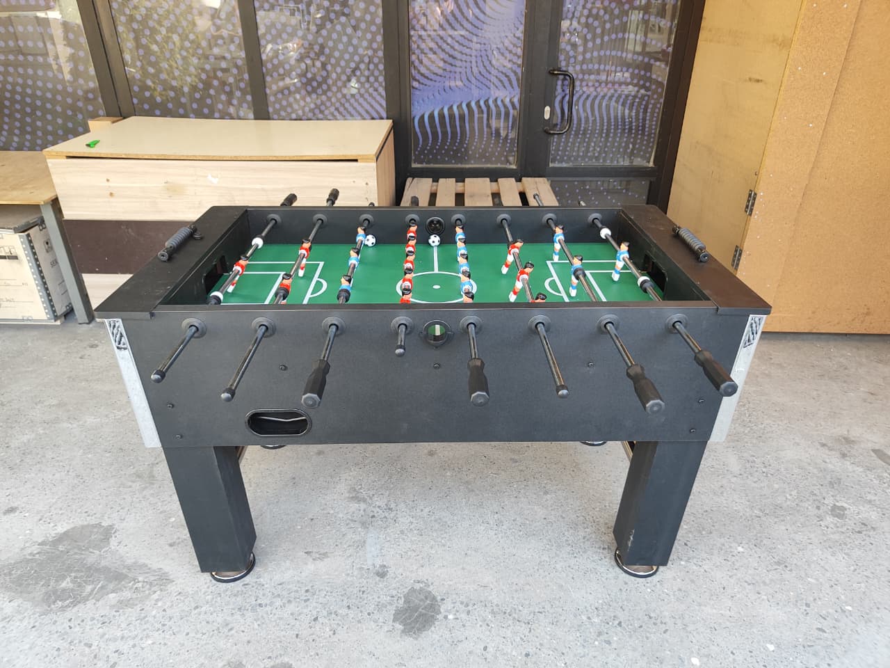 ფეხბურთის მაგიდა, გამძლე მეტალის სახელურებით და სტაბილური სტრუქტურით. იდეალურია სახლისთვის, ოფისისთვის ან გასართობ სივრცეებისთვის. კომფორტული სახელურები და გლუვად მოძრავი ლიანდაგები უზრუნველყოფს სასიამოვნო და დინამიკურ თამაშს.