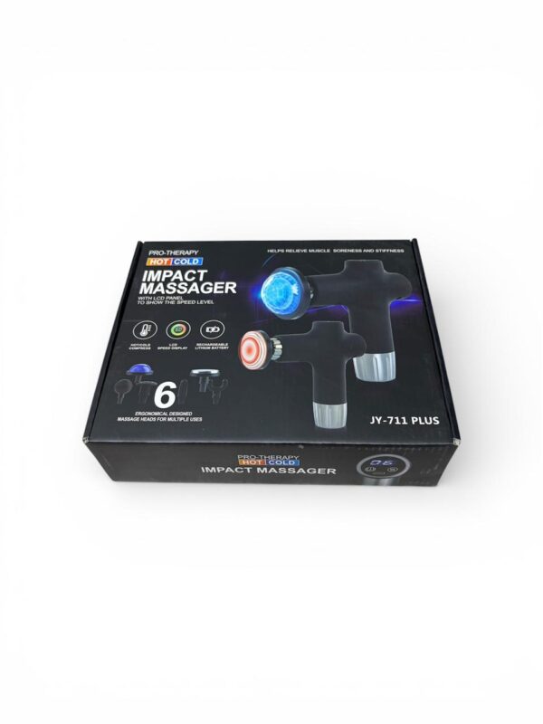 Pro-Therapy Hot & Cold Impact Massager JY-711 Plus არის მრავალფუნქციური მასაჟორი, რომელიც ეფექტურად ამცირებს კუნთების ტკივილს, დაჭიმულობასა და დაღლილობას. ცხელი და ცივი კომპრესის ფუნქცია აძლიერებს მასაჟის ეფექტს, ხელს უწყობს კუნთების სწრაფ აღდგენას და სისხლის მიმოქცევის გაუმჯობესებას. იდეალურია როგორც ვარჯიშის შემდეგ, ასევე ყოველდღიური რელაქსაციისთვის.